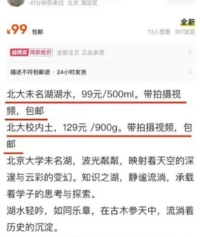 “北大未名湖湖水”“清华校河河水”现网络交易平台,校方回应