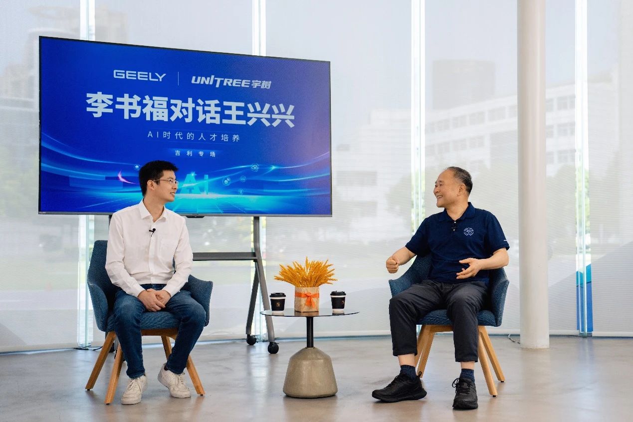 【大河财立方消息】据吉利控股集团消息,近日,吉利控股集团董事长李书福与宇树科技创始人王兴兴首次同框,以“AI时代的人才培养”为主题,围绕人才教育、AI创新、个人成长等话题进行了沟通交流。
