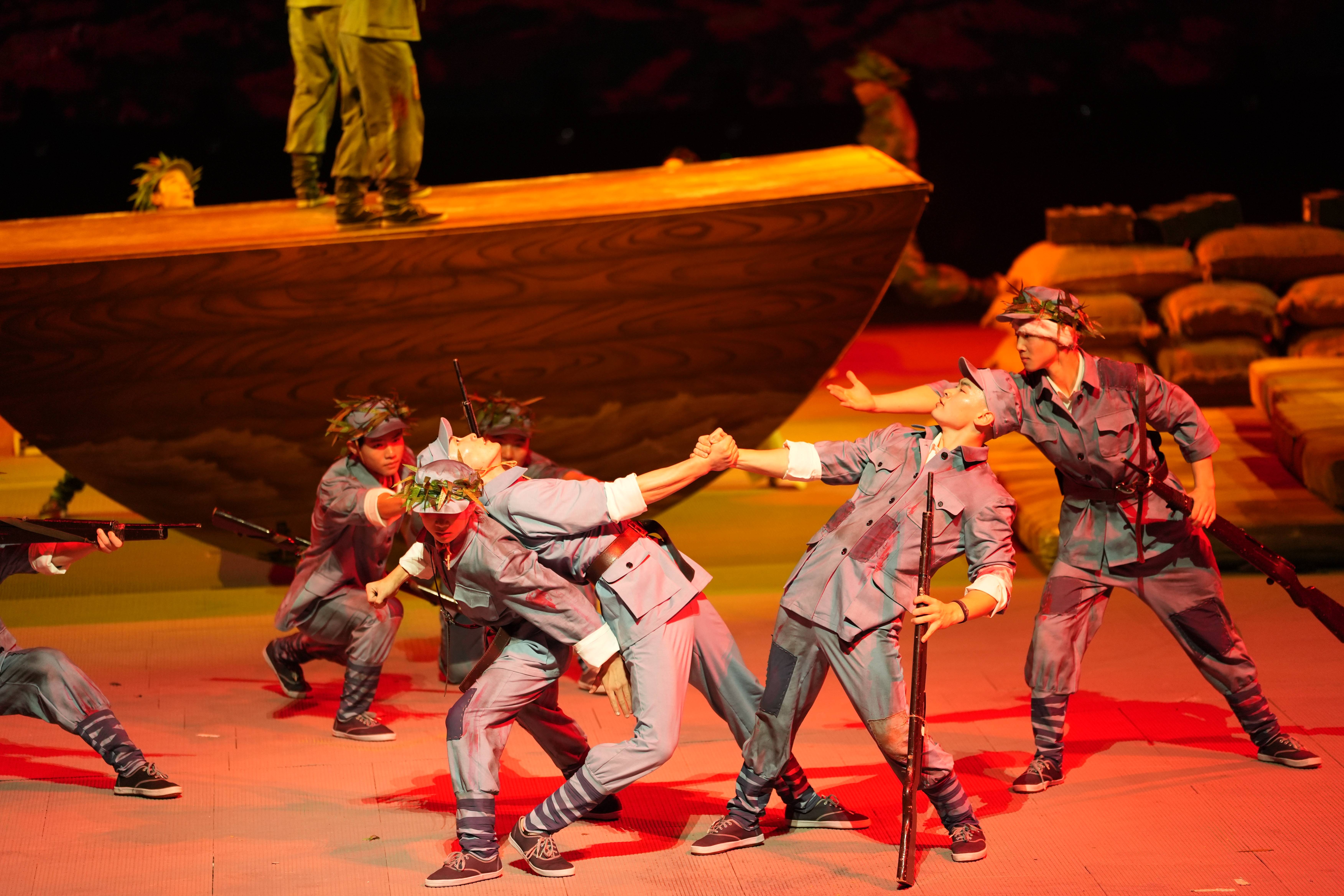 惊险刺激的大跳台,技巧与艺术结合的手球,幽默诙谐的魔术表演……河南省杂技集团以“刘邓大军强渡黄河、千里挺进大别山”为创作背景打造的大型红色杂技剧《进攻令》惊艳亮相,融合大跳板、柔术、高空钢丝等10余项传统杂技技艺,展现出深厚的艺术内涵与强大的感染力。