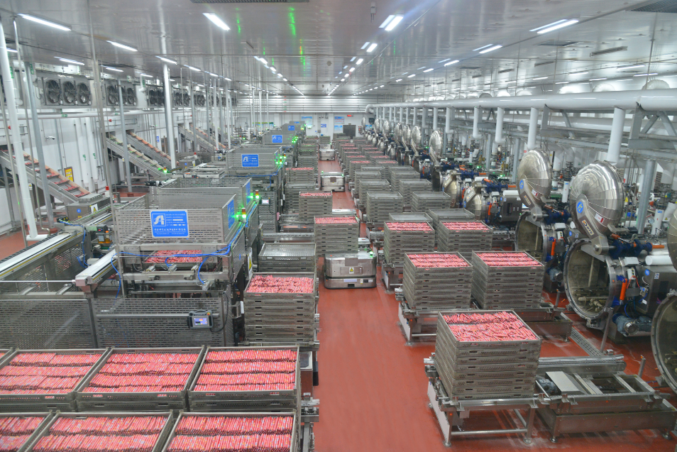 走进双汇第一工业园肉制品车间,智能化生产线正展现工业4.0的实践成果:原料肉经微波解冻后进入自动绞制环节,油脂在线分析设备实时显示各项指标,在自动导向车等智能设备配合下,完成从辅料配置到包装出库的全流程自动化生产。这套投资2.4亿元的升级项目,大幅减少人工干预节点,降低人为因素带来的质量风险。