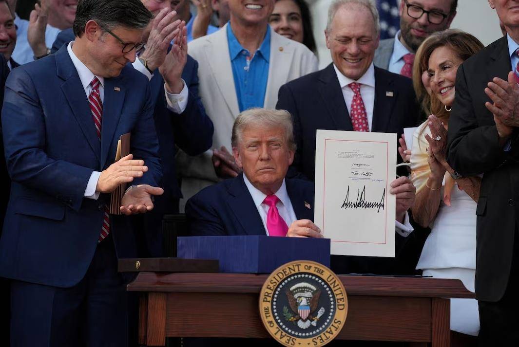 当地时间7月4日,美国总统特朗普签署“大而美”税收和支出法案,使其生效。此前,该法案已在美国国会众议院以218票赞成、214票反对的表决结果通过。