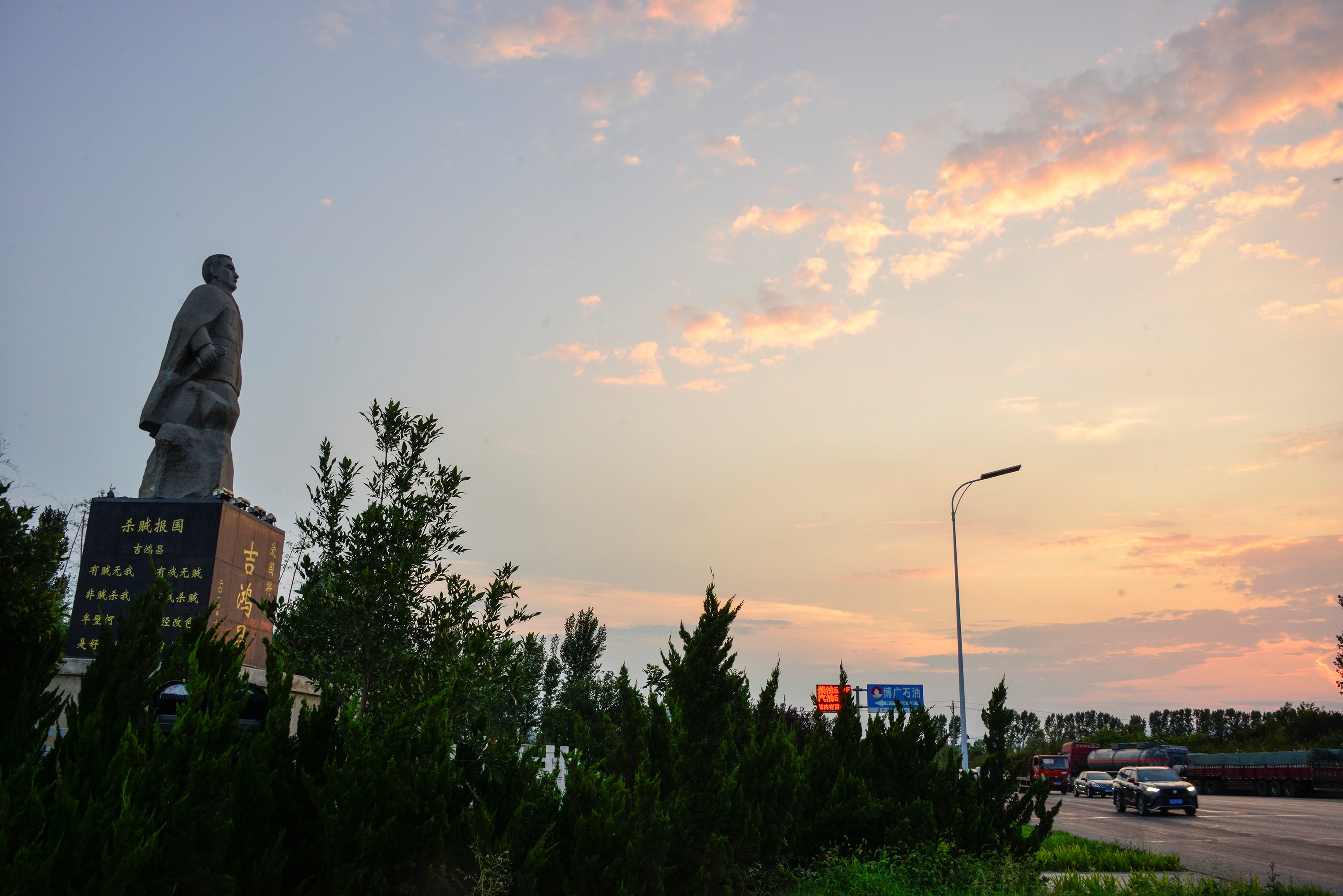 吉鸿昌将军雕像和脚下的鸿昌路。 郑海斌 摄