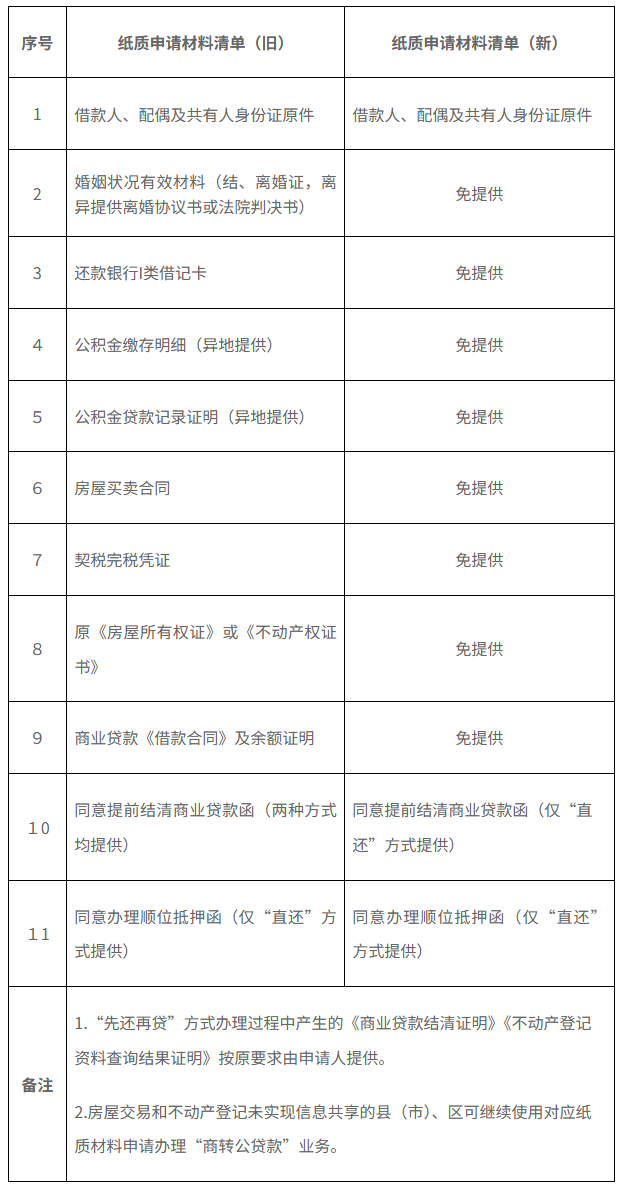 附件:“商转公贷款”纸质申请材料新旧清单对照表