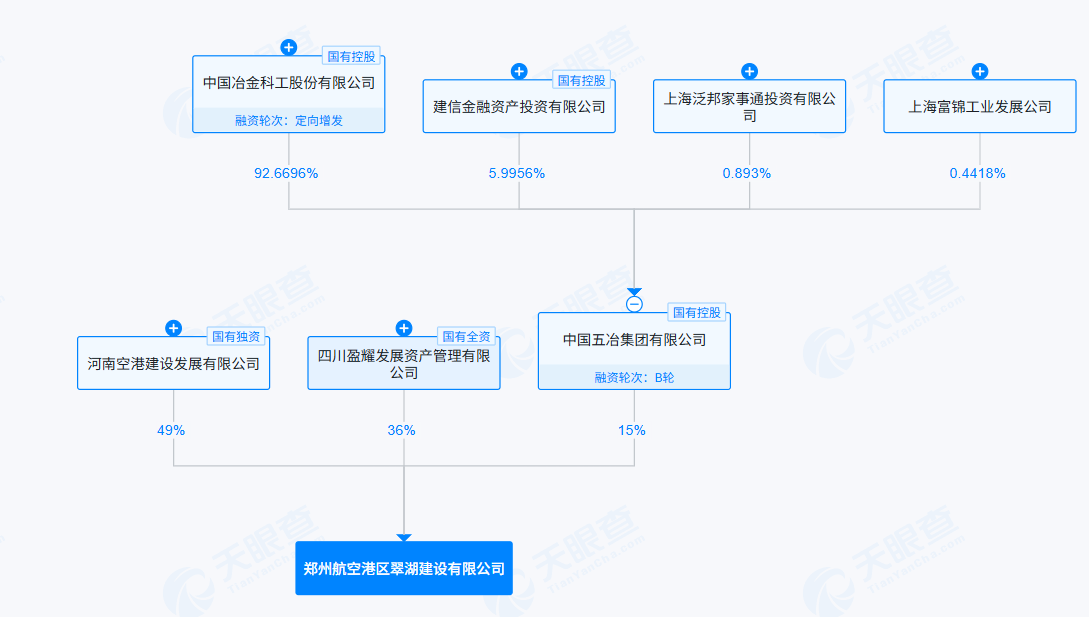 股权穿透显示,该公司由河南空港建设发展有限公司、中国中冶旗下中国五冶集团有限公司等共同持股。