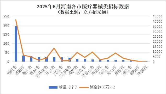 【大河财立方 记者 唐卫东】立方招采通显示,6月份,河南省累计开展医疗器械及相关服务招标和中标项目共计725个。