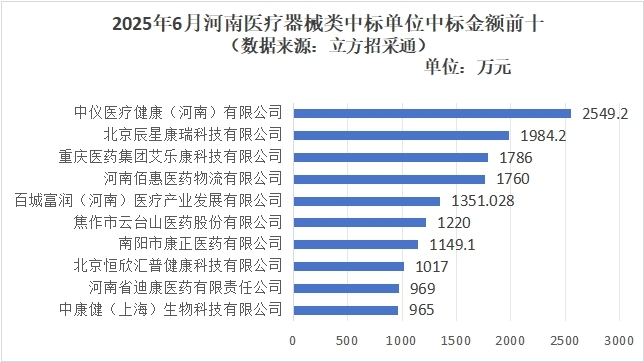 在中标总金额方面,中仪医疗健康(河南)有限公司以2549.2万元成为本月中标总金额最高的企业,该公司5月份中标3个项目。