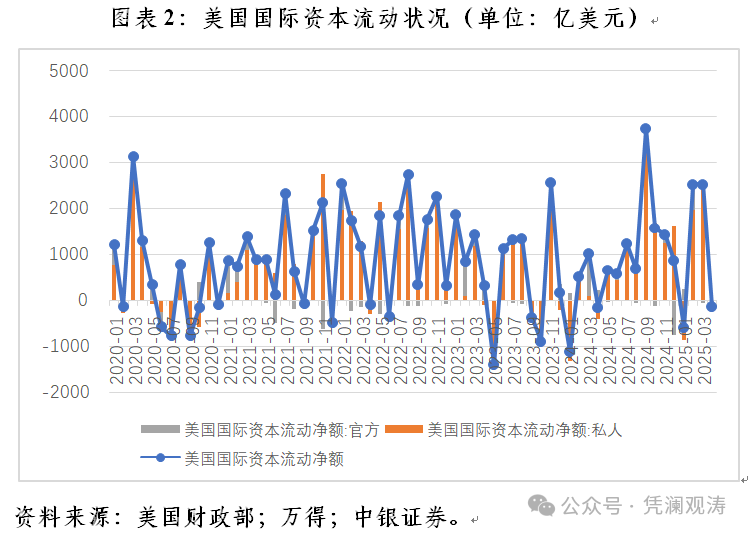 根据TIC数据,今年一季度,美国国际证券资本净流入4475亿美元,远高于去年同期净流入430亿美元的规模。其中,私人外资净流入3711亿美元,去年同期为净流出671亿美元;官方外资净流入764亿美元,同比减少30.5%。也就是说,在股汇“双杀”的背景下,当季外资流入有增无减,尤其是私人外资大幅回流。官方外资流入虽有所下降,但远好于去年四季度净流出677亿美元的情形(见图表2),且规模不小,处于1978年以来单季净流入规模的93.5%分位。