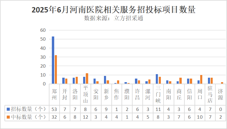 【大河财立方 见习记者 李雯雯 实习生 焦贤哲】立方招采通数据显示,2025年6月,河南医院相关服务招标与中标项目总计259个,其中,招标项目137个,中标项目122个。