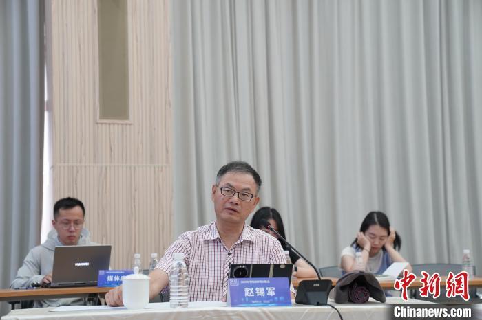 7月15日,中国人民大学中国资本市场研究院联席院长赵锡军在中新社国是直通车举行的“2025年中经济形势分析会”上发言。国是直通车 赵斌 摄