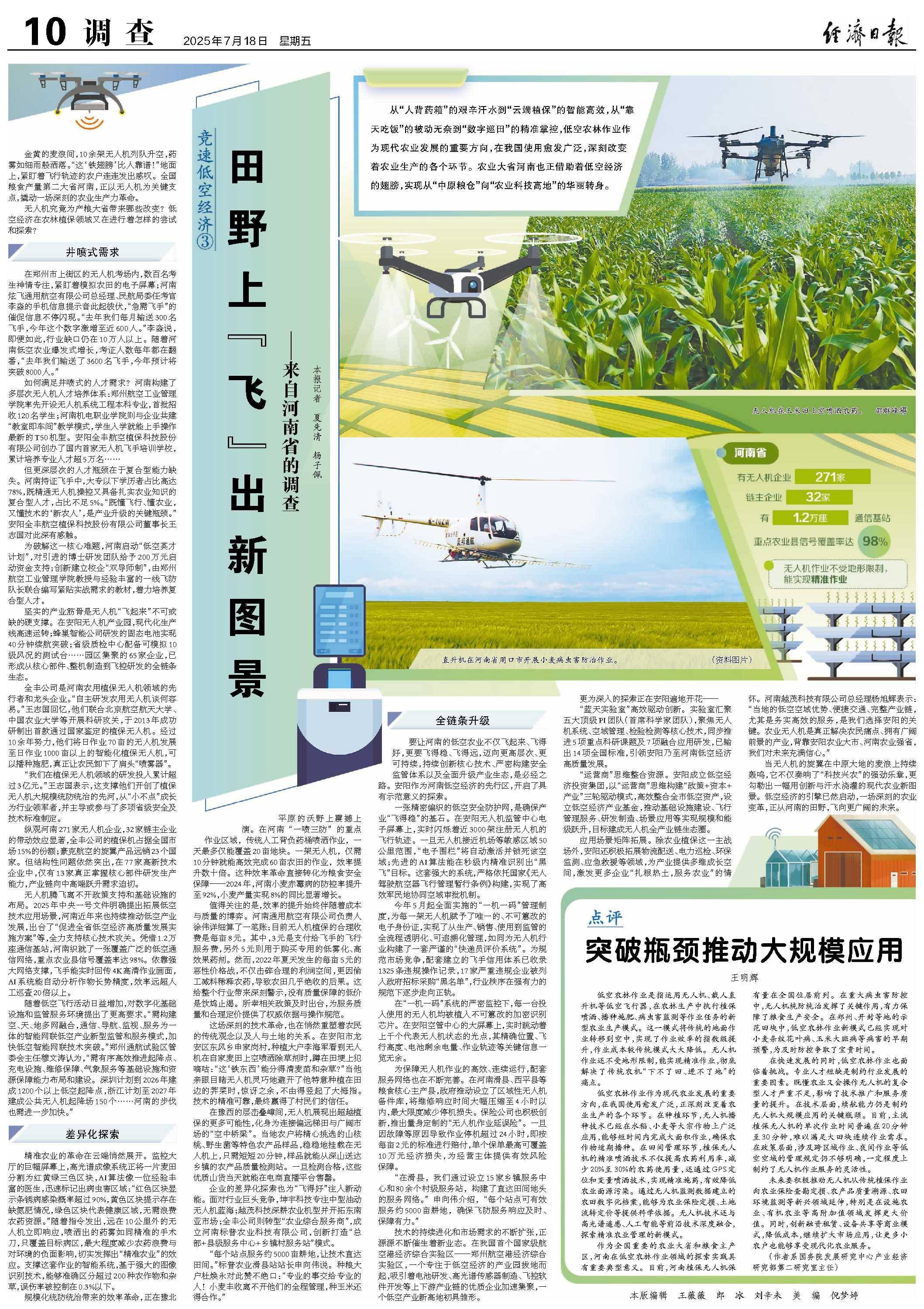 要让河南的低空农业不仅飞起来、飞得好,更要飞得稳、飞得远,迈向更高层次、更可持续,持续创新核心技术、严密构建安全监管体系以及全面升级产业生态,是必经之路。安阳作为河南低空经济的先行区,开启了具有示范意义的探索。