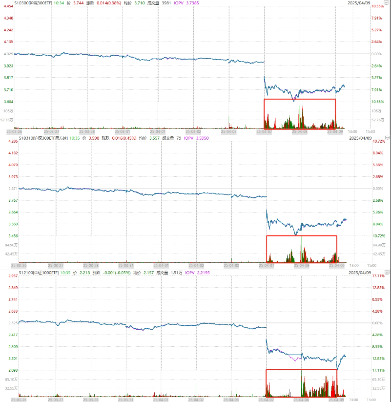 从几只头部宽基的成交图能看到,4月7日、8日两个交易日,多只基金出现大额申购,力度远超日常规模。