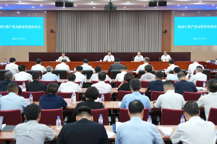 农业农村部部长韩俊认真听取大家发言,就有关问题作深入交流,要求进一步完善有关政策举措,坚决防止出现生产大起大落、价格大跌,切实消除生猪产业高质量发展的深层次制约,提升生猪产业发展综合素质和竞争力。