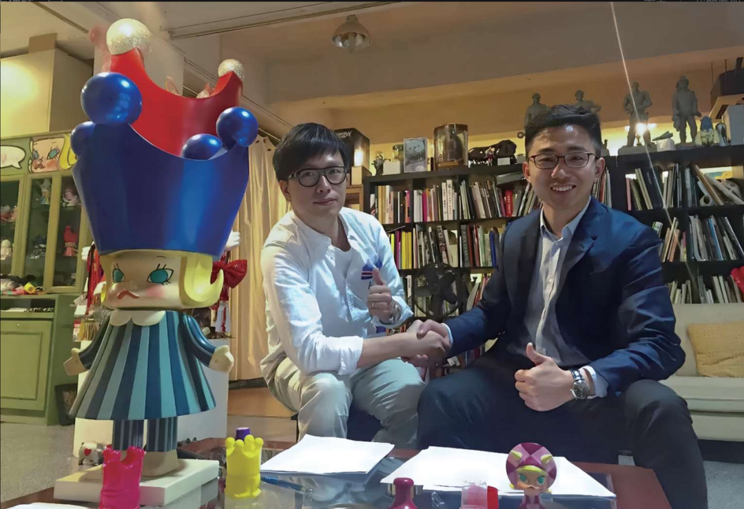 △2016年,王宁与MOLLY创作者王信明(左)签约。