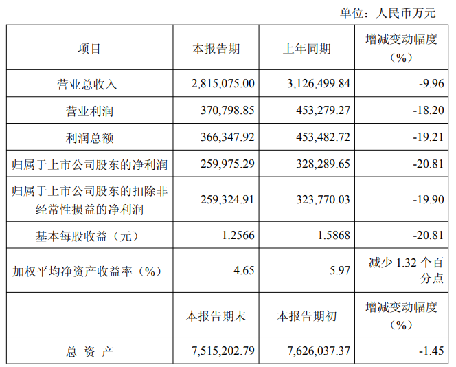 2025年上半年,中国中免实现营业总收入281.51亿元,同比下降9.96%;归属于上市公司股东的净利润26.00亿元,同比下降20.81%。