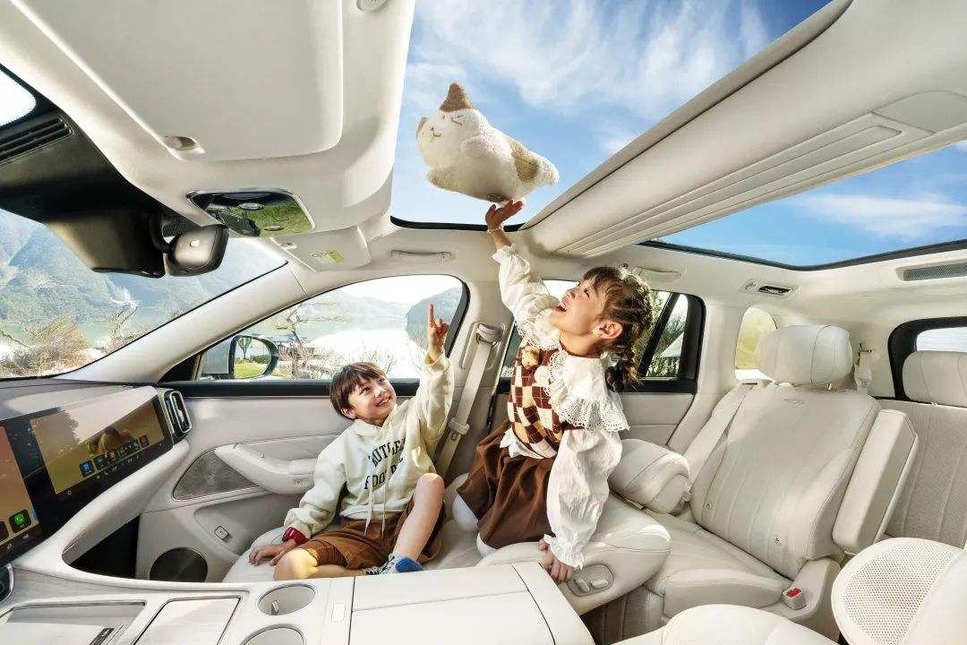 星闪NearLink技术上车,解锁更精准、锁车更及时,让数字车钥匙变得好用;二排零重力座椅不仅是乘车时的移动观景台,也可以是哄娃神器;32英寸激光巨幕投影缓缓落下,车内瞬间切换为移动家庭影院;加持HUAWEI SOUND音响,首发磐石零共振门低音,让这个移动家庭影院音效拉满。