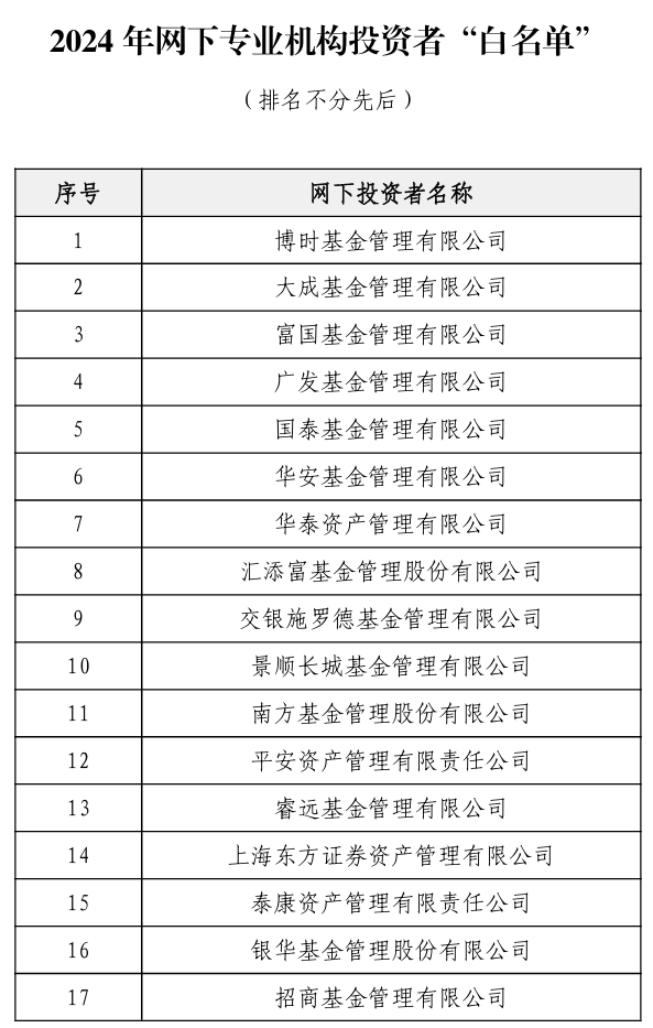 【大河财立方消息】7月25日,中基协发布2024年网下专业机构投资者 “白名单”。
