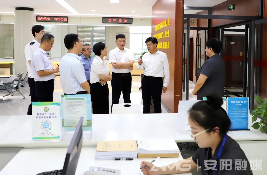 林州市推进综治中心规范化建设,打造涵盖“1厅、3区、14个功能室”的综合性服务场所,开发“林州矛调”微信小程序,推行“一案一码”,让人民群众化解矛盾纠纷“最多跑一地”。袁家健走进林州市综治中心,察看人民调解接待室、诉讼服务中心、劳动监察服务中心、检察服务中心等,了解矛盾纠纷化解流程,群众诉求登记、受理、办理情况,强调要坚持源头预防、多元化解、上下联动,加强职能部门协调配合,努力实现群众诉求“一站式受理、一揽子调处、全链条解决”。要加强宣传引导,让更多群众了解综治中心的功能、作用,总结推广基层综治工作先进经验,更好推动平安安阳、法治安阳建设。