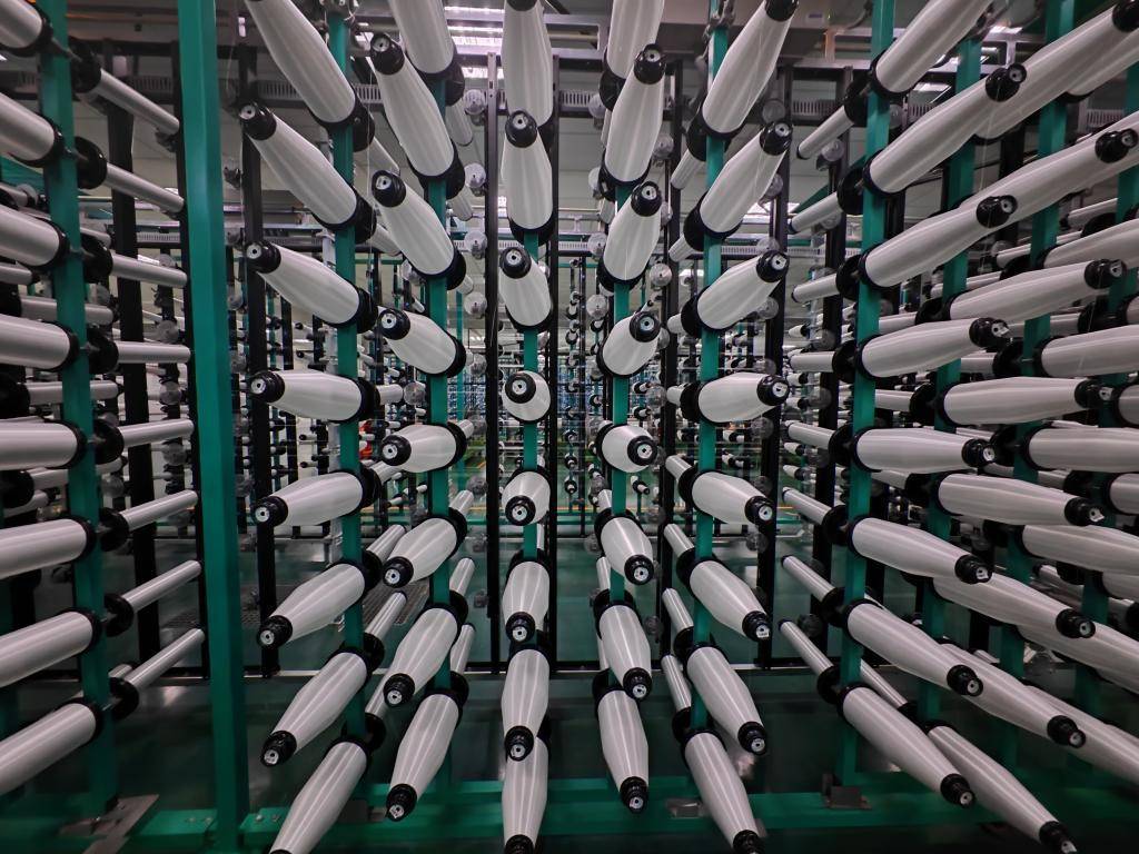 在河南光远新材料股份有限公司,车间内正在生产玻璃纤维纱。新华社记者 刘振坤 摄