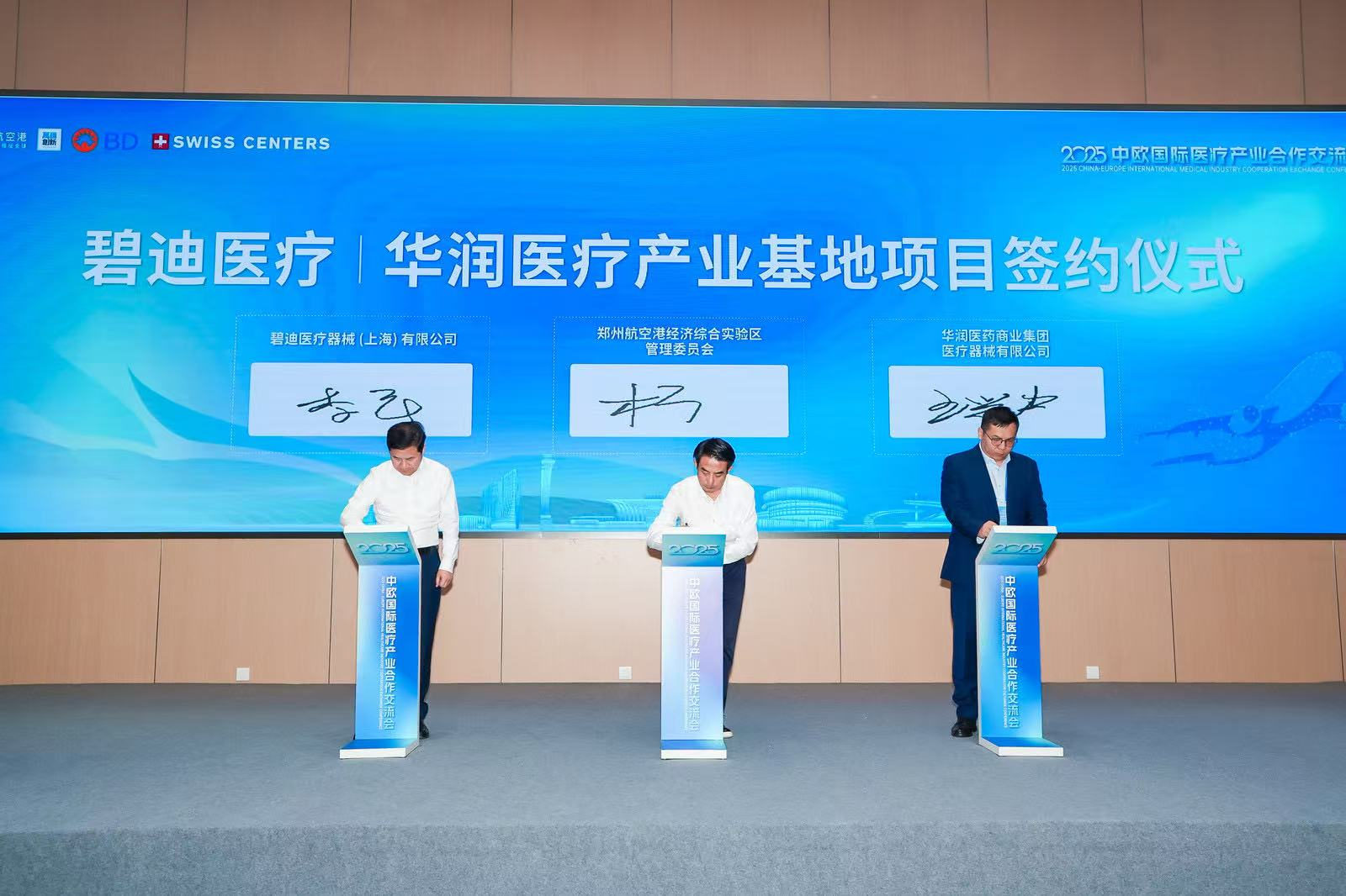 同时,郑州航空港与碧迪医疗、华润医疗签约产业基地项目,拟在郑州航空港投资落地“一总部一中心两基地”。