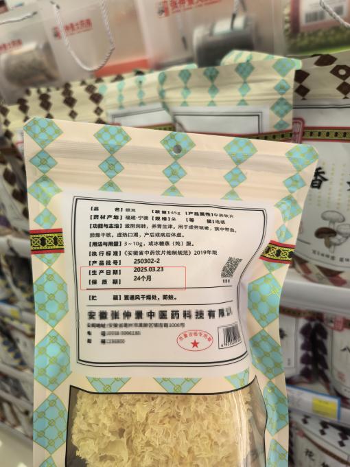 记者走访多家药店发现,大部分药店的中药饮片都按新规标注有保质期,市场上仅存极少量未标注保质期的旧包装饮片。记者在丽康大药房旗下某家店铺看到,货架的最底层摆放着几包山药片和银耳,包装上标注了品名、重量、产地、批号及生产日期等,但未标注保质期,生产日期均是2023年5月。