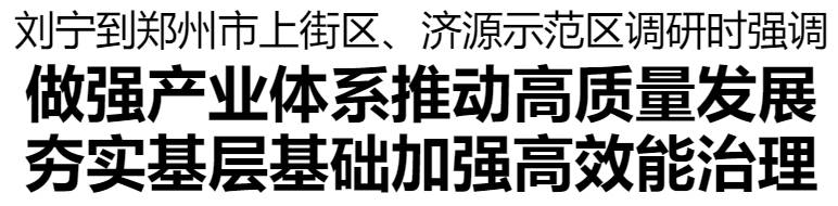 8月2日,省委书记刘宁到郑州市上街区、济源示范区,调研经济发展、产业转型、基层治理等工作。