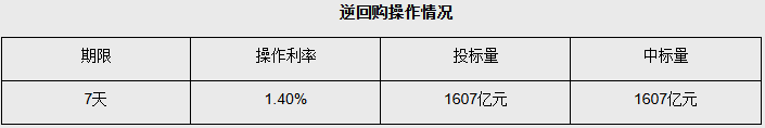 【大河财立方消息】8月5日,中国人民银行发布公告称,以固定利率、数量招标方式开展了1607亿元7天期逆回购操作,操作利率1.40%,与此前持平。因今日有4492亿元7天期逆回购到期,当日实现净回笼2885亿元。