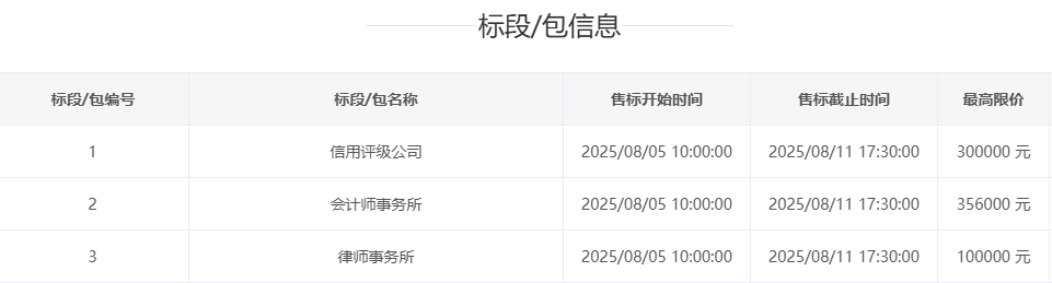 资格要求方面,一标段响应人须为经中国人民银行认可的评级机构,在中国证监会从事证券评级业务备案名单中,且为中国银行间市场交易商协会会员;