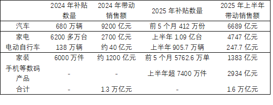 根据商务部数据,今年上半年1620亿元中央补贴带动销售额超1.6万亿元。由于中央和地方的补贴资金约为9:1,上半年中央资金加上地方配套资金合计补贴为1800亿元以上。