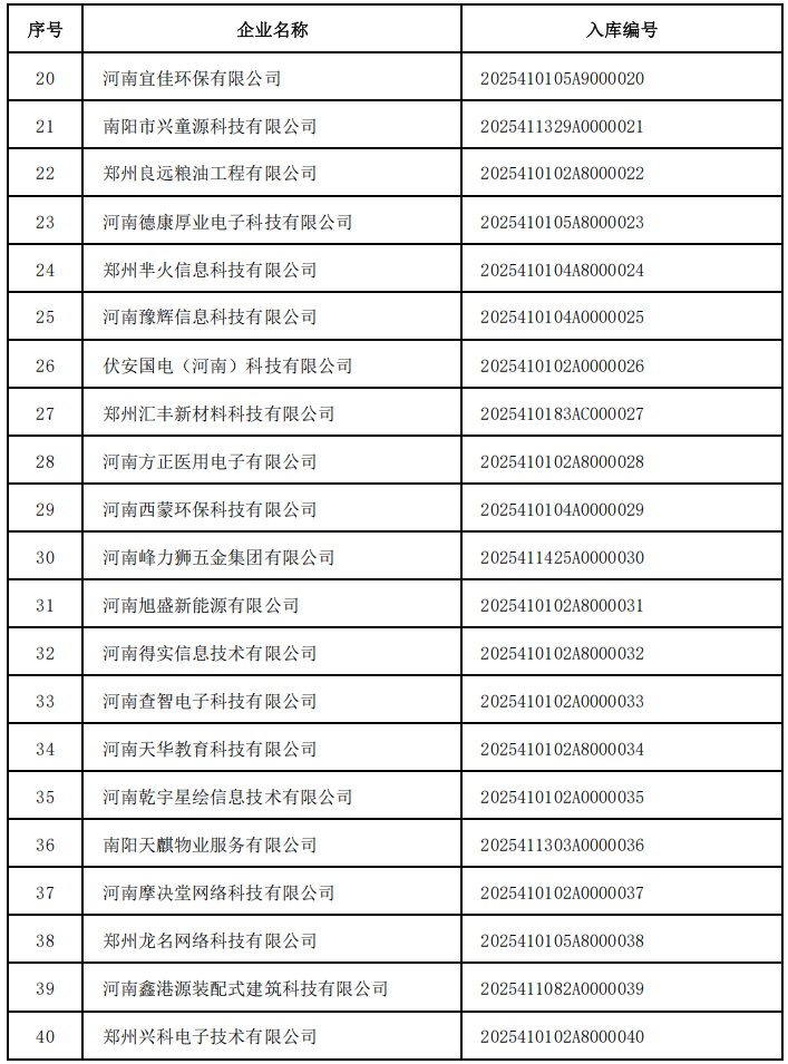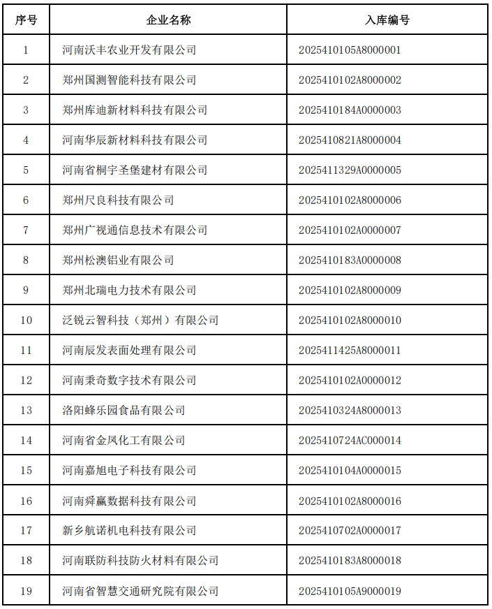 【大河财立方消息】8月6日,河南省科技厅公布2025年第一批入库科技型中小企业名单。河南沃丰农业开发有限公司等3903家企业获得科技型中小企业入库编号,22家企业不符合科技型中小企业条件。