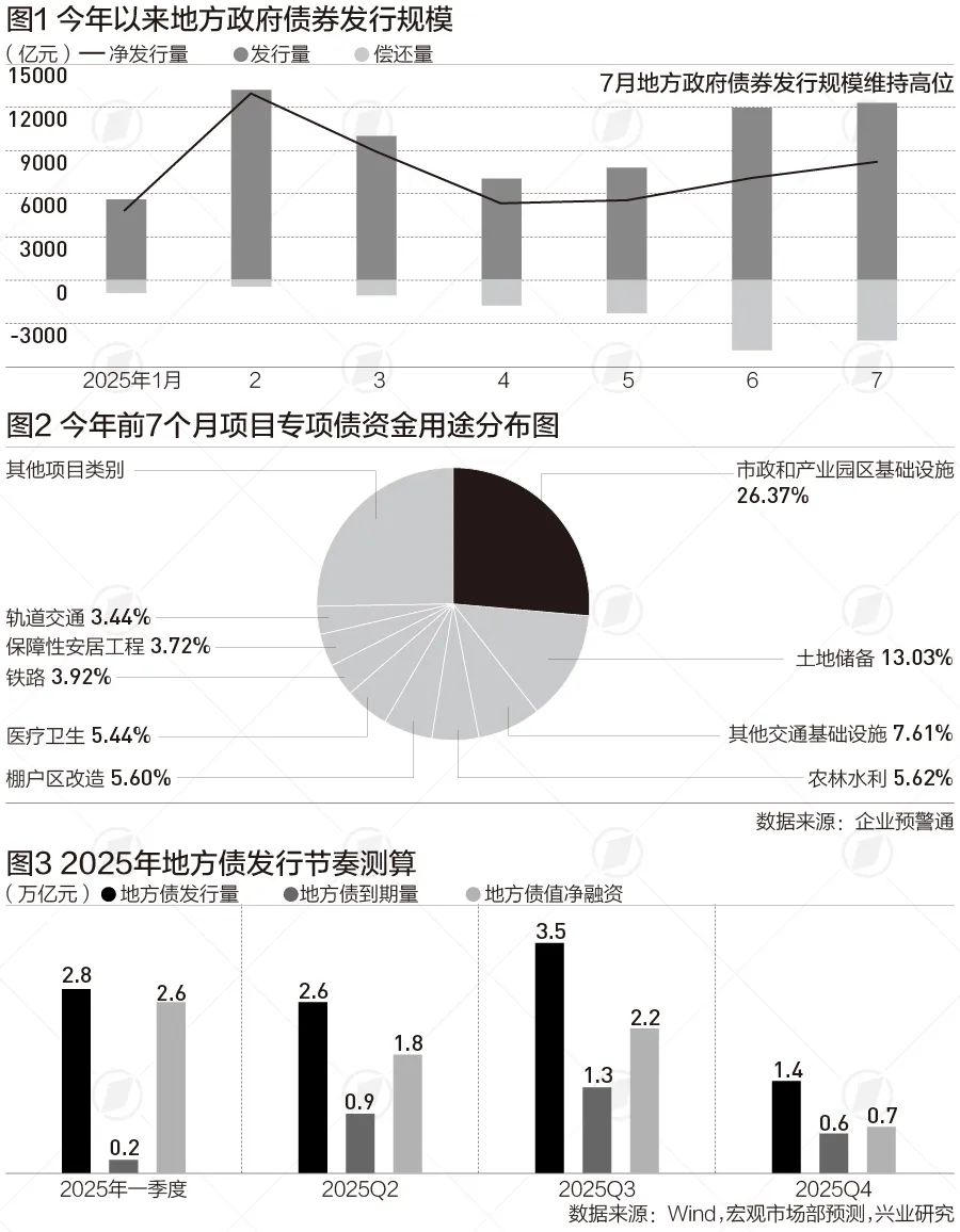 兴业研究研报预计,今年第三季度地方债发行规模3.5万亿元,净融资规模为2.2万亿元。