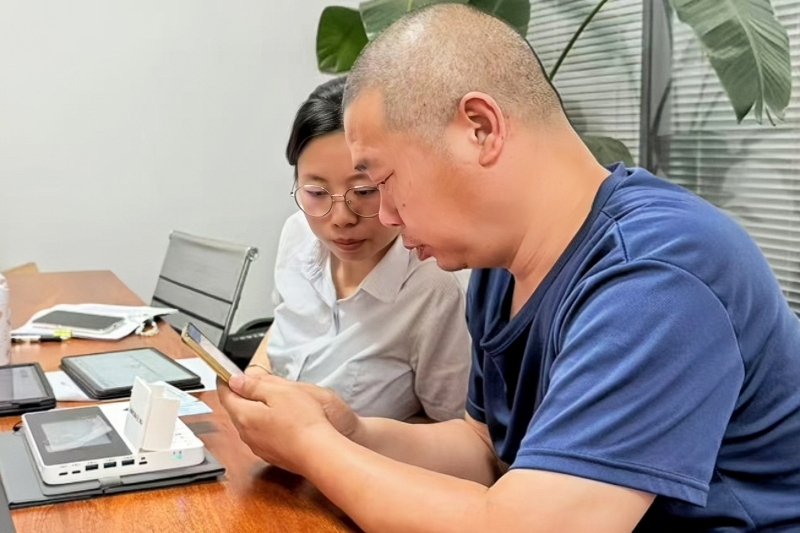 ▲工行河南郑州金水相济路支行工作人员指导客户使用手机银行