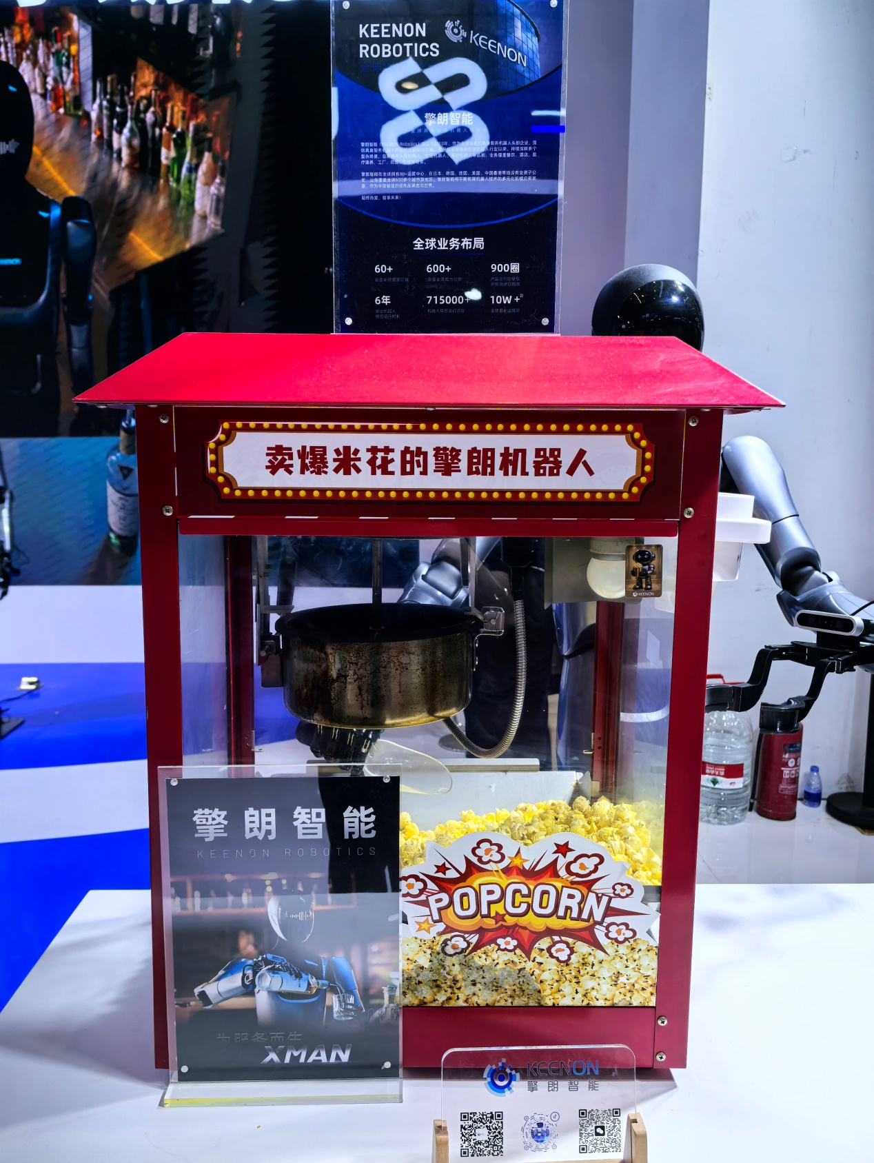 擎朗XMAN家族的另一位成员XMAN-R1,则在现场流畅地完成爆米花与饮品的制作。更令人惊奇的是,擎朗机器人XMAN-R1还是一名出色的“调酒师”。