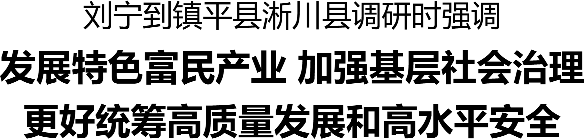 调研中,刘宁听取镇平县、淅川县经济社会发展情况汇报,强调要落实省委十一届九次全会部署,聚焦“1+2+4+N”目标任务体系,加快建设现代化产业体系,不断提升助企服务质效,统筹好高质量发展和高水平安全,全力做好下半年经济工作。当前仍处于防汛关键期,要做好应对旱涝急转准备,落实落细防汛各项措施,加强地质灾害隐患巡查,做到防范在先、处置在早,打好防汛救灾主动仗。