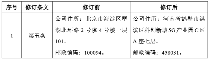 【大河财立方消息】8月11日消息,航天宏图信息技术股份有限公司(证券简称航天宏图,股票代码:688066)发布公告称,公司董事会会议审议通过议案,公司拟将注册地址由“北京市海淀区翠湖北环路2号院4号楼一层101”变更为“河南省鹤壁市淇滨区科创新城5G产业园C区A座七层”,本次变更后的注册地址以市场监督管理部门登记的注册地址为准。