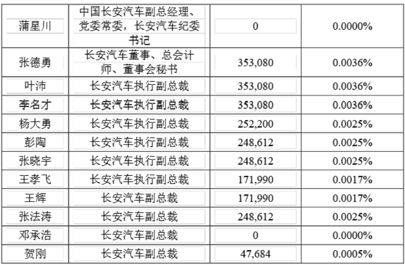 长安汽车:19人计划增持公司股份,每人不低于30万元