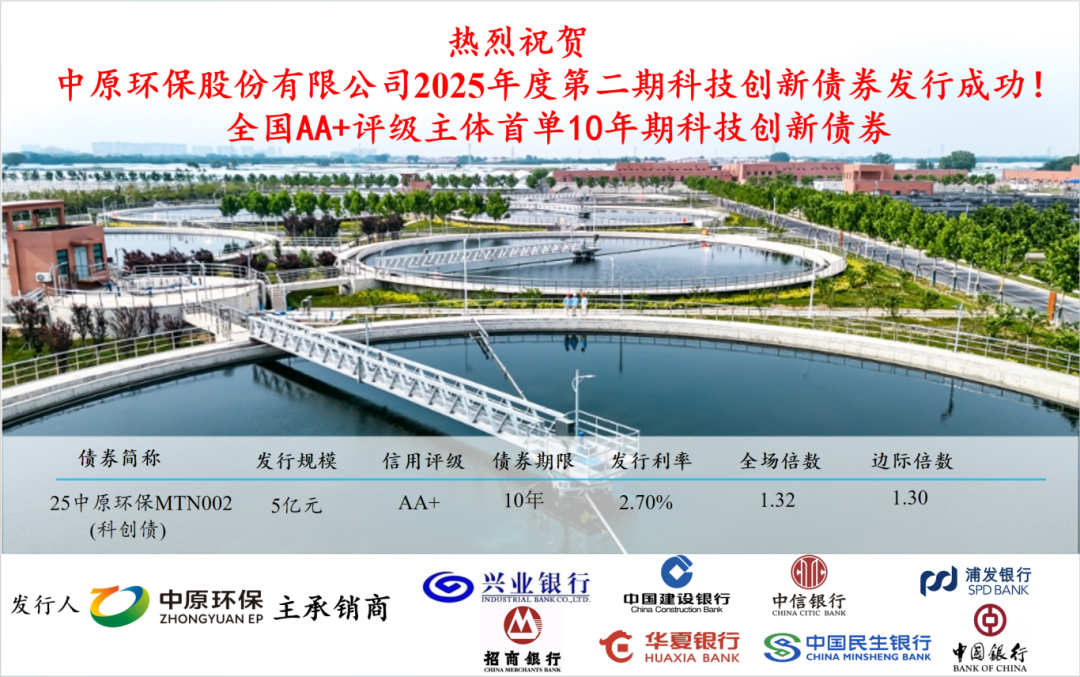 中原环保表示,作为河南AA+主体首单10年期债券,更是全国AA+主体首单10年期科技创新债,此次发行拓宽了公司融资渠道,以“时间换空间”的创新思维,为公司生产经营提供长期、稳定、低成本的资金保障,助力公司在“双碳”领域持续领先。同时,为河南省AA +企业跨越期限障碍、打通长期资金通道提供了可借鉴的范例,为河南金融市场注入创新活力。