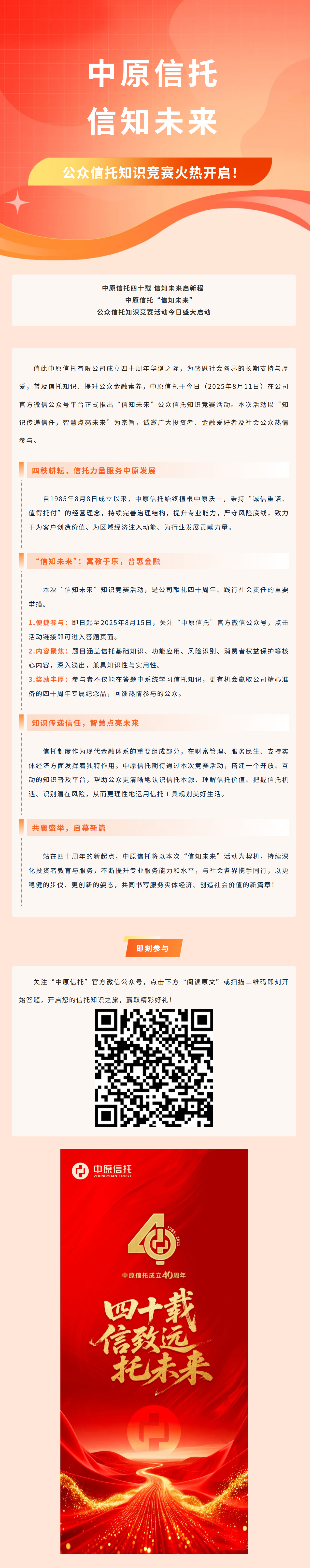 中原信托成立40周年!“信知未来”公众信托知识竞赛火热开启!