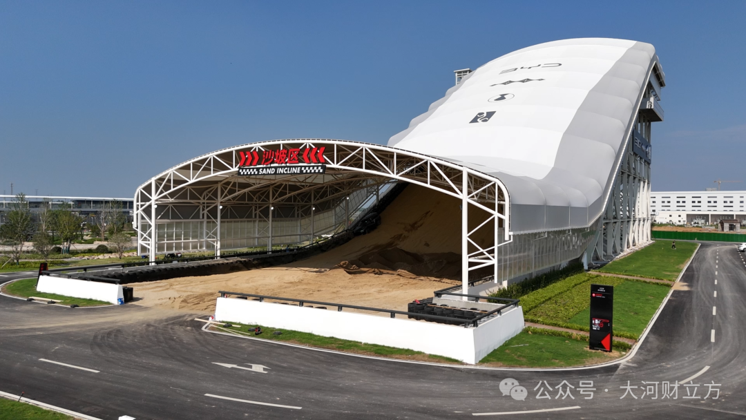 赛车场内部除了有传统赛车场的直道、弯道等赛道外,还配备了越野区、浮水区、沙坡区和露营区等全地形、多维度的体验空间,可以满足不同车型在不同工况下的试车体验。