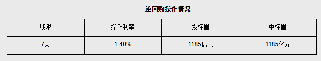 【大河财立方消息】8月13日,中国人民银行以固定利率、数量招标方式开展了1185亿元逆回购操作,操作利率1.40%,与此前持平。因今日有1385亿元7天期逆回购到期,当日实现净回笼200亿元。