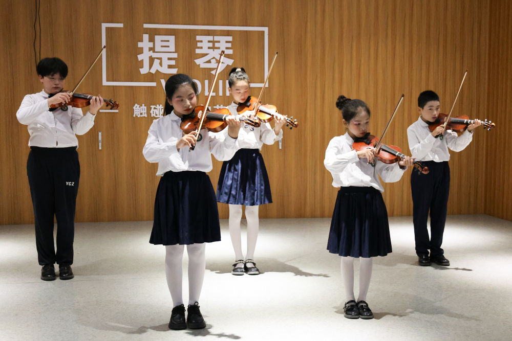 7月24日,在河南省驻马店市确山县的确山提琴产业园,参加小提琴培训班的学生在演奏。