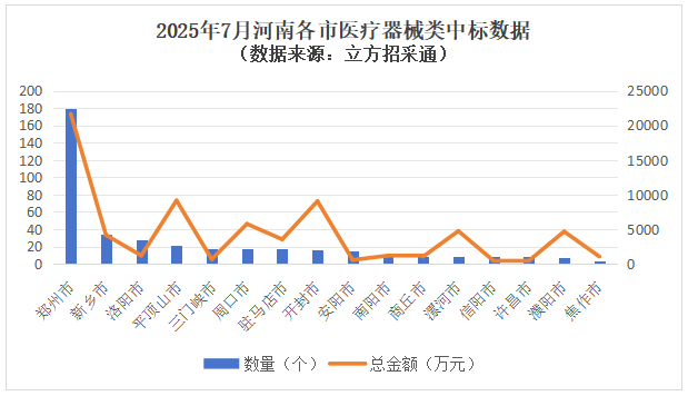 【大河财立方 记者 唐卫东】立方招采通最新数据显示,2025年7月份,河南省累计开展医疗器械及相关服务招标和中标项目共计843个。