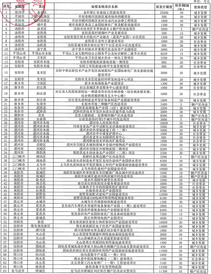 发行的2025年河南省政府专项债券(四十五期)将投向以下项目: