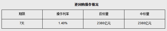 【大河财立方消息】8月15日,中国人民银行以固定利率、数量招标方式开展了2380亿元逆回购操作,操作利率1.40%,与此前持平。因今日有1220亿元7天期逆回购到期,当日实现净投放1160亿元。