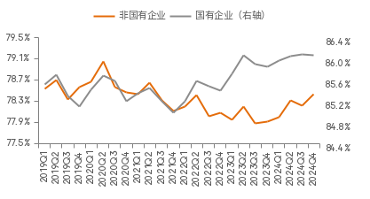 图4 A股上市公司中国有企业和非国有企业资产负债率