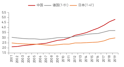 注:中国所处年份为T,德国为T-51,日本为T-47。