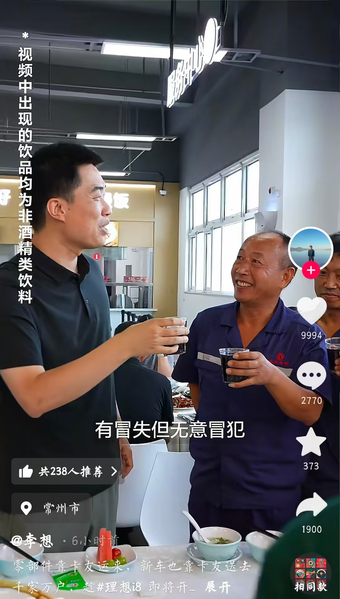 【大河财立方消息】8月18日,理想汽车CEO李想在社交媒体发布视频表示,理想i8将于8月20日开启全国交付,在发运之前,他请部分卡车师傅们吃饭。
