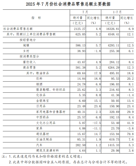 【大河财立方消息】8月19日,河南省统计局发布的数据显示,7月份,全省社会消费品零售总额2125.27亿元,同比增长4.8%。其中,限额以上单位消费品零售额625.05亿元,增长5.2%。