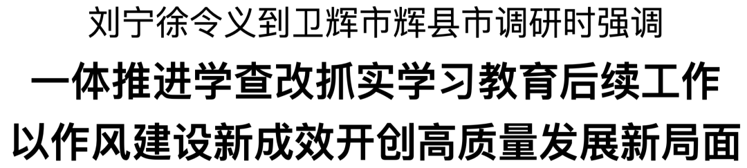 学习教育开展以来,新乡市全面扎实开展学查改系列专项行动,坚持学中查、查中改、改中学,以作风之变助推发展之变。调研中,刘宁、徐令义听取卫辉市、辉县市经济社会发展及学习教育开展情况汇报,强调要深入学习贯彻习近平总书记在河南考察时重要讲话精神,按照省委十一届九次全会部署,持续开展学查改系列专项行动,推动认识再深化、责任再强化、措施再实化,扎实做好整改整治和建章立制工作,系统梳理一批好做法好经验,确保学习教育后续工作一抓到底、取得实效。