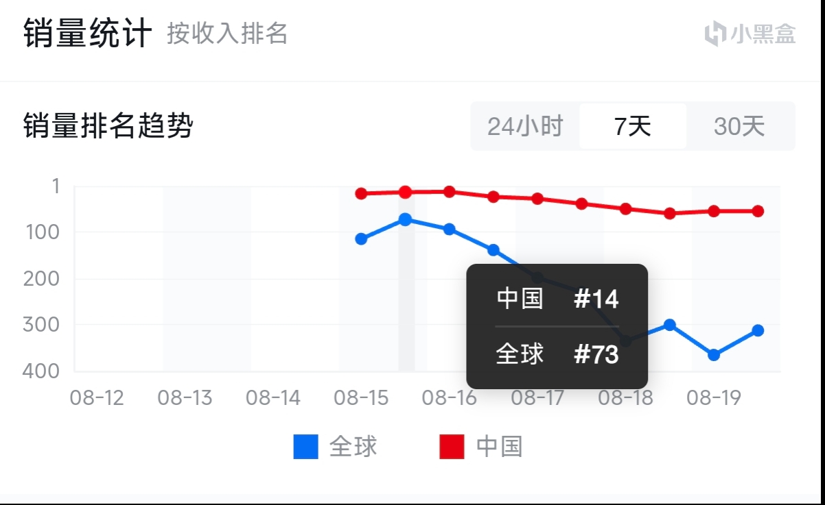 尽管该游戏语言仅支持英文,但中国玩家购买热情仍然高涨。据小黑盒销量统计,在发售期间,该游戏在中国区销量最高排名第14名,在全球排名第73名。截至发稿,该游戏中国区实时销量排名为第55名,全球及其他地区排名均在百名开外。