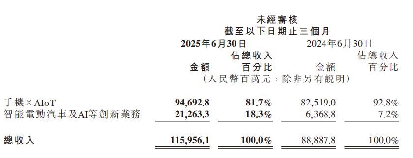 具体来看,二季度小米手机、汽车、大家电三大增长曲线持续向好。从备受外界关注的智能汽车业绩表现来看,小米智能电动汽车及AI等创新业务分部收入213亿元,同比增长234%,创历史新高,占总营收比重为18.3%。这意味着小米智能汽车业务开始步入规模化增长阶段。